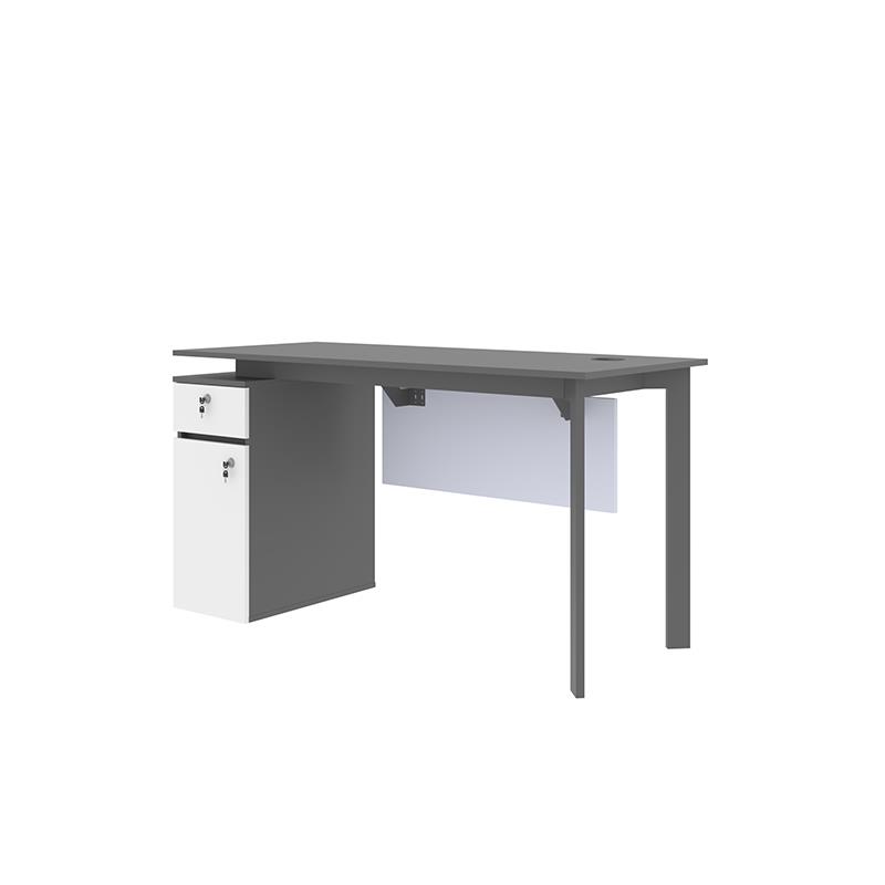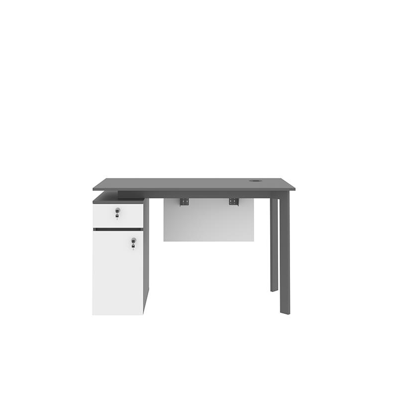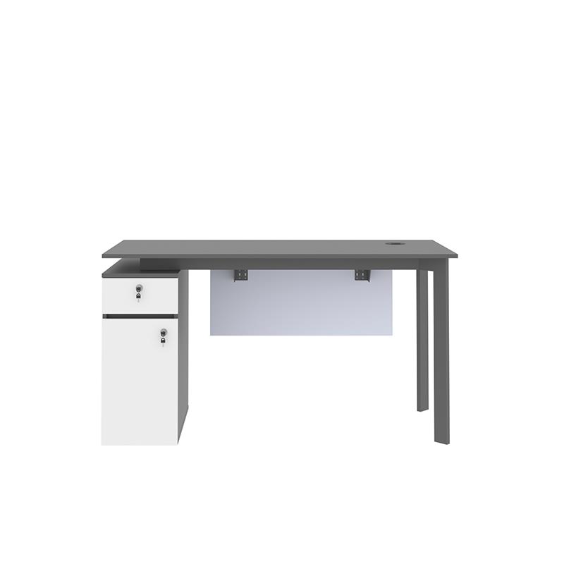 این میز در ابعاد متنوع و متناسب با نیاز فضاهای مختلف ارائه میشود و در چندین چیدمان کاربردی قابل انتخاب است. کشوی میز به ریل ساچمهای روان مجهز می باشد. همچنین کمد و کشو دارای قفل کلیددار می باشند تا دسترسی آسان و امنیت لوازم داخل آن تضمین شود. دستگیرههای آلومینیومی مشکی توکار نیز ضمن حفظ ظاهر یکدست و مینیمال، دوام بالایی در استفاده روزمره دارند. همچنین استفاده از اتصالات الیت در ساختار میز، استحکام بالا و امکان نصب و دمونتاژ آسان را بدون آسیب به قطعات فراهم کرده و محصول را برای جابهجایی و چیدمانهای متغیر اداری کاملاً مناسب ساخته است.