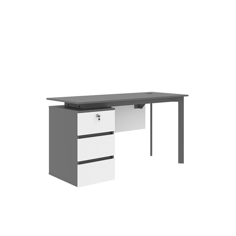 این میز در ابعاد متنوع و متناسب با نیاز فضاهای مختلف ارائه میشود و در چندین چیدمان کاربردی قابل انتخاب است. تمامی کشوها به ریل ساچمهای روان مجهز شدهاند و همچنین کشوی اول دارای قفل کلیددار می باشد تا دسترسی آسان و امنیت لوازم داخل آن تضمین شود. دستگیرههای آلومینیومی مشکی توکار نیز ضمن حفظ ظاهر یکدست و مینیمال، دوام بالایی در استفاده روزمره دارند. همچنین استفاده از اتصالات الیت در ساختار میز، استحکام بالا و امکان نصب و دمونتاژ آسان را بدون آسیب به قطعات فراهم کرده و محصول را برای جابهجایی و چیدمانهای متغیر اداری کاملاً مناسب ساخته است.