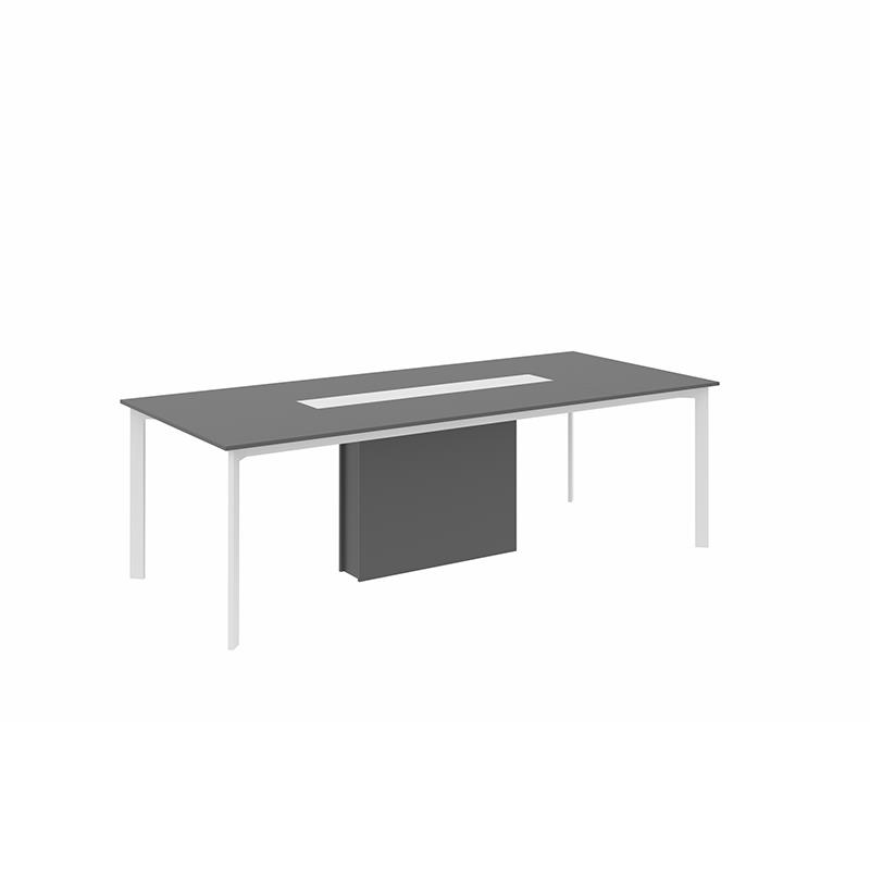 میز کنفرانسی پایه فلزی 551 میزی ساده و زیبا می باشد که مناسب فضاهای شیک و مدرن امروزی می باشد. صفحه رویی این میز بصورت دو رنگ طراحی شده که زیبایی خاصی به آن بخشیده است. امکان سفارش گذاری این میز در ابعاد مختلف، استفاده این میز را در مکان های مختلف به راحتی فراهم کرده است. صفحه های این میز از جنس MDF با ضخامت 16 میلیمتر ساخته شده که این متریال در عین استحکام بالا، زیبایی را نیز برای میز و فضای مورد استفاده به همراه دارد. همچنین بر روی سطح محصول از روکش ملامینه ضد خش استفاده شده که به افزایش دوام محصول کمک کرده است. پایه های این میز از جنس فولاد رنگ شده شده و در سه رنگ مشکی، خاکستری و سفید قابل سفارش گذاری است. وجود کلاف فلزی و باکس وسط در زیر صفحه موجب ایستایی بهتر صفحه می گردد. دریچه عبور سیم پلاستیکی بر روی میز وجود داشته و الکتریکال باکس نیز می تواند به عنوان آپشن به این محصول اضافه گردد.