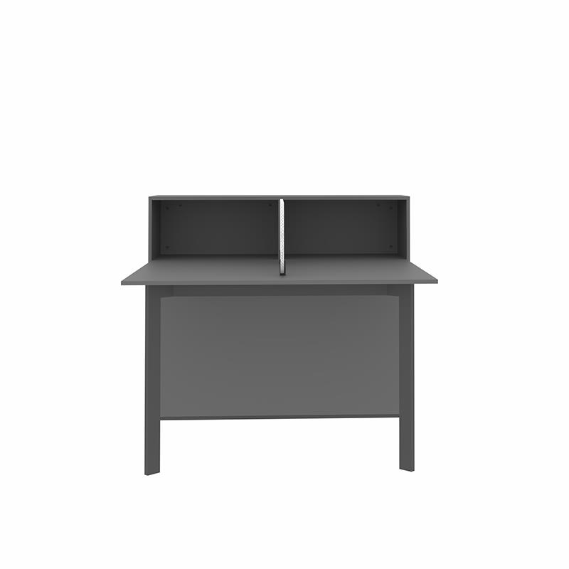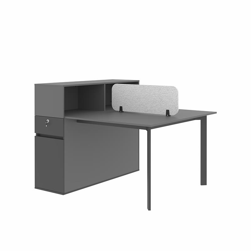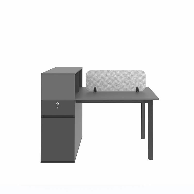 میز کارگروهی پایه فلزی 551 با باکس و فضای شلف روی میز مناسب فضاهای شیک و مدرن امروزی می باشد. این میز توسط دیوایدر MDF، پارچه و یا شیشه ای از ناحیه وسط صفحه رویی به دو قسمت تقسیم شده است. صفحه های این میز ازMDF با ضخامت 16 میلیمتر ساخته شده که این متریال در عین استحکام بالا، زیبایی را نیز برای میز و فضای مورد استفاده به همراه دارد. همچنین بر روی سطح محصول از روکش ملامینه ضد خش استفاده شده که به افزایش دوام محصول کمک کرده است. پایه های این میز از جنس فولاد رنگ شده و در سه رنگ مشکی، خاکستری و سفید قابل سفارش گذاری است. وجود کلاف فلزی در زیر صفحه موجب ایستایی بهتر صفحه می گردد. میز همچنین دارای کشو با قفل کلیددار می باشد که نیاز افراد را برای انبارش لوازم شخصی برطرف می کند.