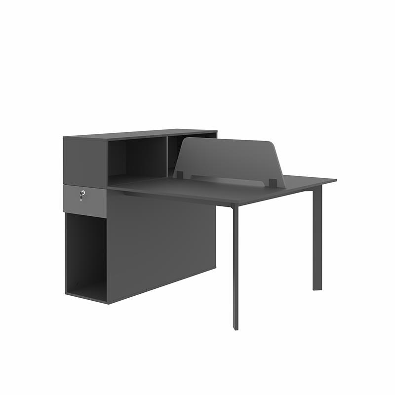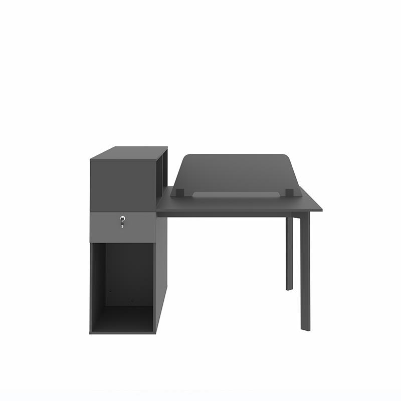 میز کارگروهی پایه فلزی 551 با جای کیس و فضای شلف روی میز مناسب فضاهای شیک و مدرن امروزی می باشد. این میز توسط دیوایدر MDF، پارچه و یا شیشه ای از ناحیه وسط صفحه رویی به دو قسمت تقسیم شده است. صفحه های این میز ازMDF با ضخامت 16 میلیمتر ساخته شده که این متریال در عین استحکام بالا، زیبایی را نیز برای میز و فضای مورد استفاده به همراه دارد. همچنین بر روی سطح محصول از روکش ملامینه ضد خش استفاده شده که به افزایش دوام محصول کمک کرده است. پایه های این میز از جنس فولاد رنگ شده و در سه رنگ مشکی، خاکستری و سفید قابل سفارش گذاری است. وجود کلاف فلزی در زیر صفحه موجب ایستایی بهتر صفحه می گردد. میز همچنین دارای کشو با قفل کلیددار می باشد که نیاز افراد را برای انبارش لوازم شخصی برطرف می کند.