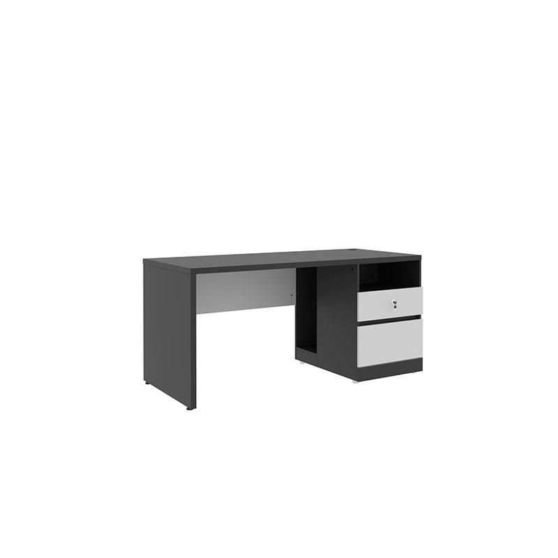 میز کارمندی مدل 554 دارای طراحی مستطیلی ساده است که ابعاد مناسبی برای قرار گیری در فضای اداری دارد متریال محصول جنس نئوپان با روکش ملامینه می باشد که باعث کاهش قیمت محصول در عین حفظ کیفیت شده است. میز دارای دو کشو برای نگهداری لوازم شخصی و اداری بوده و هم چنین دارای فضای قرارگیری جای کیس و فضای کافی برای سایر لوازم اداری بصورت شلف می باشد