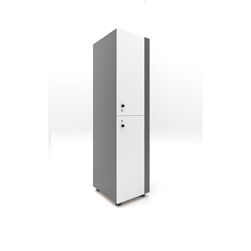 لاکر 556 به صورت تک کمد ستونی می باشد که دارای دو فضای مجزا و اختصاصی برای استفاده همزمان دو کاربر است. هرفضا به صورت مجزا دارای یک قسمت بزرگ تر برای قرارگیری البسه، کوله ورزشی، کیف و لوازم شخصی و یک فضای کوچک تر برای قرارگیری کفش می باشد. به منظور سهولت استفاده و جلوگیری کثیف و چروک شدن البسه در فضای قرارگیری البسه قلاب آویز لباس تعبیه شده است. همچنین به جهت تردد هوای آزاد به درون کمد، ممانعت از حبس و راکد شدن هوای داخل کمدها و جلوگیری از رشد قارچ و ایجاد بیماری های پوستی برای کاربران، برای فضای کمد یک عدد دریچه عبور هوا لحاظ گردیده است. درب های لاکر 556 به گونه ای طراحی شده اند که ابتدا بدنه ای به عرض 8 سانتیمتر قرارگرفته است و درب ها به این بدنه متصل می گردند. علت وجود این بدنه در طراحی این نوع از لاکر، بدان جهت می باشد که در هنگام باز بودن درب های لاکرها، فضایی بین دو لاکر کنار هم ایجاد می گردد تا کاربران به راحتی بتوانند همزمان از دو محصول کنار هم استفاده کنند و درب بازشده لاکر برای کاربر کناری ایجاد مزاحمت نکند. این ترکیب در عین جذابیت بصری، مدرن و معاصر بوده و امکان قرارگیری در انواع فضاها با طراحی داخلی متنوع را مقدور می سازد. همچنین با توجه به امکان سفارش گذاری در رنگ های مختلف، این محصول می تواند جلوه خاصی به فضای مورد استفاده بدهد. به جهت جلوگیری از نفوذ رطوبت در هنگام نظافت فضا قرارگیری، لاکر برروی چهار پایه طراحی گردیده شده است.