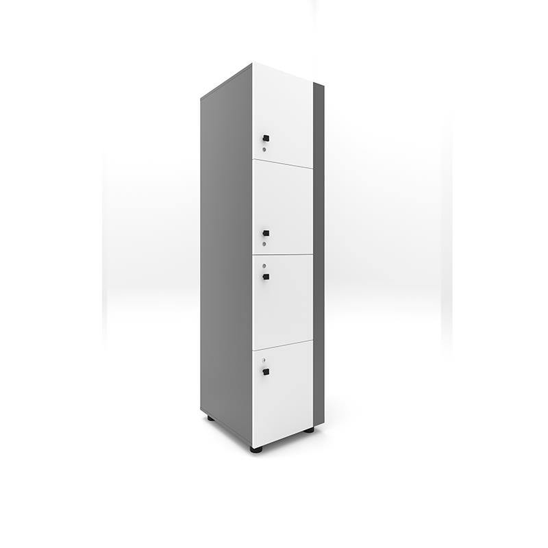 لاکر 556 به صورت تک کمد ستونی می باشد که دارای چهار فضای مجزا و اختصاصی برای استفاده همزمان چهار کاربر است. هرفضا به صورت مجزا دارای یک قسمت برای قرارگیری البسه، کوله ورزشی، کیف و لوازم شخصی می باشد. درب های لاکر 556 به گونه ای طراحی شده اند که ابتدا بدنه ای به عرض 8 سانتیمتر قرارگرفته است و درب ها به این بدنه متصل می گردند. علت وجود این بدنه در طراحی این نوع از لاکر، بدان جهت می باشد که در هنگام باز بودن درب های لاکرها، فضایی بین دو لاکر کنار هم ایجاد می گردد تا کاربران به راحتی بتوانند همزمان از دو محصول کنار هم استفاده کنند و درب بازشده لاکر برای کاربر کناری ایجاد مزاحمت نکند. این ترکیب در عین جذابیت بصری، مدرن و معاصر بوده و امکان قرارگیری در انواع فضاها با طراحی داخلی متنوع را مقدور می سازد. همچنین با توجه به امکان سفارش گذاری در رنگ های مختلف، این محصول می تواند جلوه خاصی به فضای مورد استفاده بدهد. به جهت جلوگیری از نفوذ رطوبت در هنگام نظافت فضا قرارگیری، لاکر برروی چهار پایه طراحی گردیده شده است.